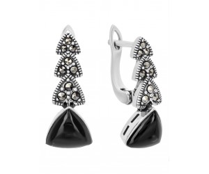 Серьги арт. HE027 Марказит, Лазурит синт.