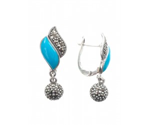 Серьги арт. HE174 Марказит, Бирюза синт.