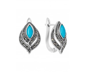 Серьги арт. HE1406 Марказит, Бирюза синт.