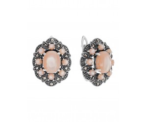 Серьги арт. HE813 Марказит, Перламутр розовый
