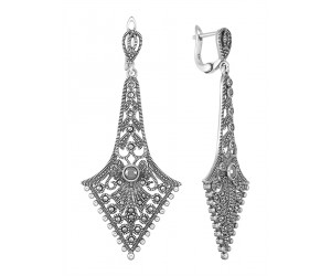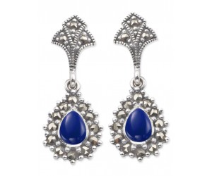 Серьги арт. HE035 Марказит, Лазурит синт.