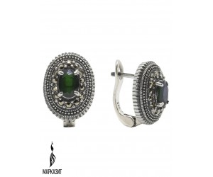 Серьги арт. HE1667 Марказит, Султанит синт.