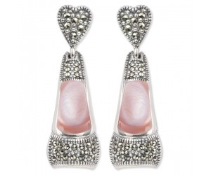 Серьги арт. HE175 Марказит, Перламутр розовый